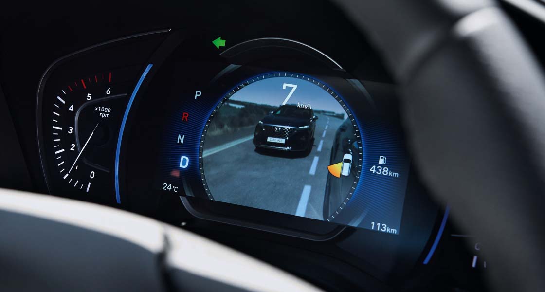 Забезпечуючи найвищий рівень безпеки, SANTA FE оснащений сучасною камерою з 360-градусним кутом огляду, яка передає інформацію, в тому числі і про об’єкти у “сліпих” зонах навколо автомобіля на різних дорогах та в різних умовах руху, на дисплей мультимедійної системи.
