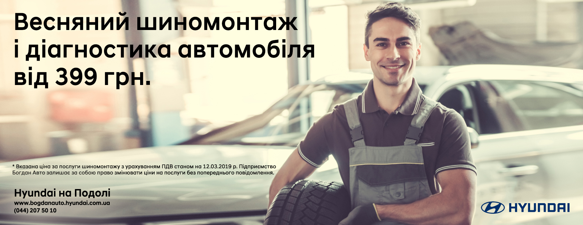 *Спеціальні ціни «Весняний шиномонтаж + 3 діагностики» діють на станції технічного обслуговування підприємства«Богдан Авто» з 12.03.2019 р. по 31.05.2019 р., підприємство залишає за собою право змінювати ціни на послуги без попереднього повідомлення. Вартість пакету послуг не включає ціну витратних матеріалів (балансувальні тягарці). Дія карт лояльності «Аккумулятор» та інші знижки на зазначені спеціальні ціни не поширюються.